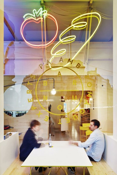 Un espace tout en rondeur, chaleureux, coloré et accueillant… Des matériaux bruts et texturés qui rendent cet espaces vivants… Des éléments de décorations en néons lumineux… bref, le Bar Nou s’inscrit totalement dans les tendances du Design d’espace de ses dernières années.